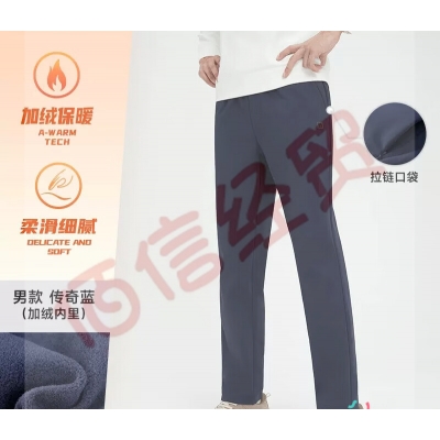 骆驼(CAMEL)运动长裤男2023春冬针织保暖加绒跑步宽松直筒裤子女 JC12263881,传奇蓝,男 M 自营