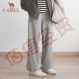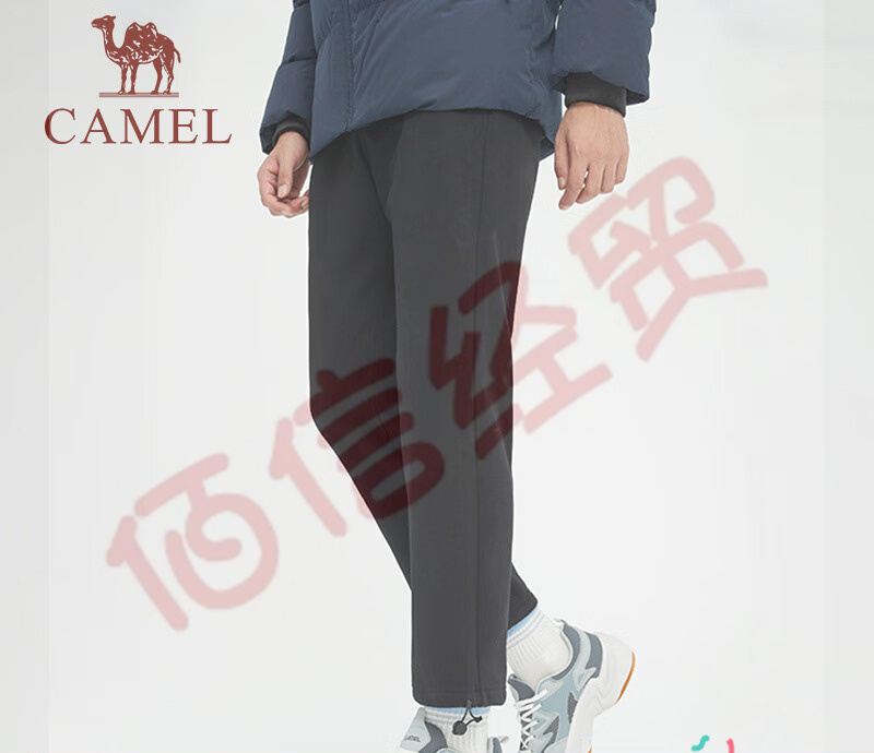 骆驼(CAMEL)运动长裤针织女士2023春秋薄款透气抓绒可调节抽绳宽松裤子 JC12263879,幻影黑,男 M 自营