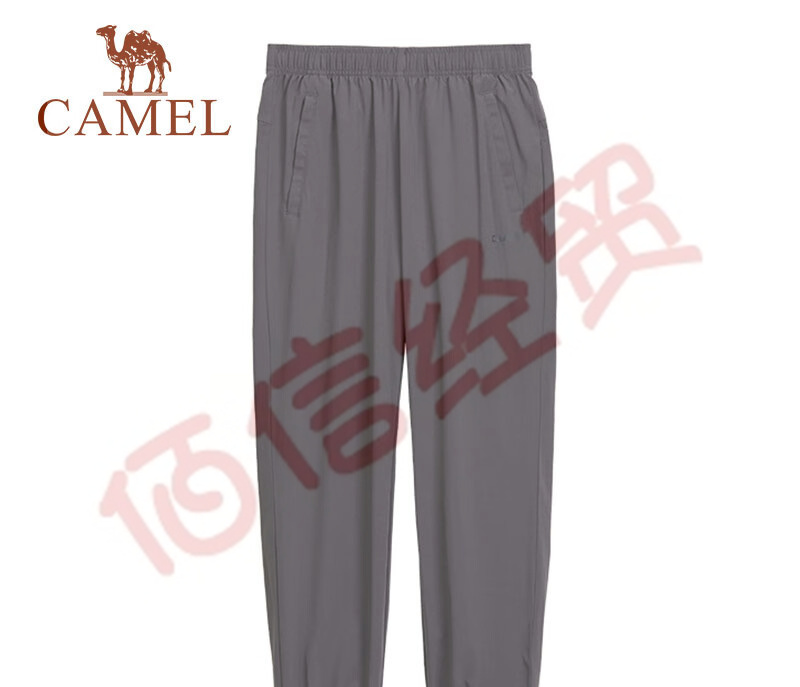 骆驼(CAMEL) 运动裤男女休闲宽松春夏男裤梭织情侣款速干长裤 C1S266667,墨灰,男 L 自营