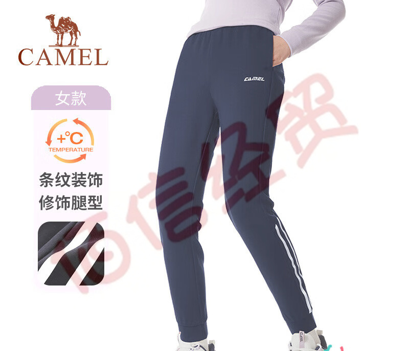 骆驼(CAMEL)运动裤女士休闲跑步宽松裤子百搭透气束脚卫裤长裤女 J1W1Y6108,藏青,女 S 自营