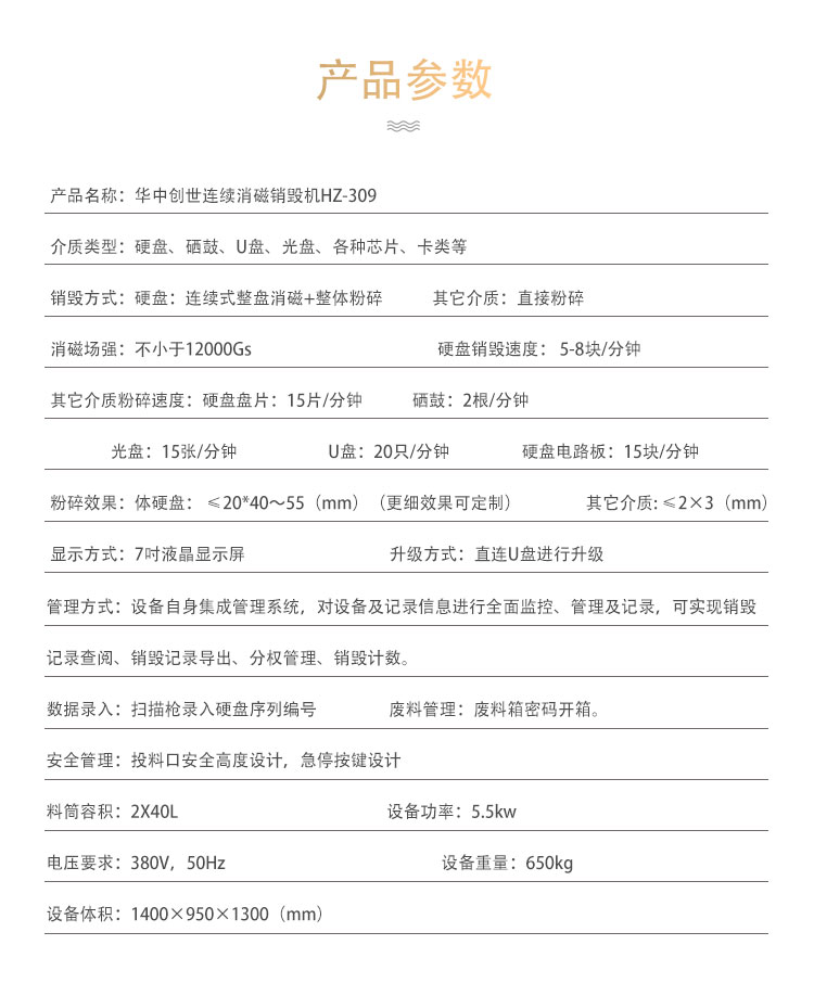 华中创世 HZ-309 连续消磁销毁粉碎一体机 自营