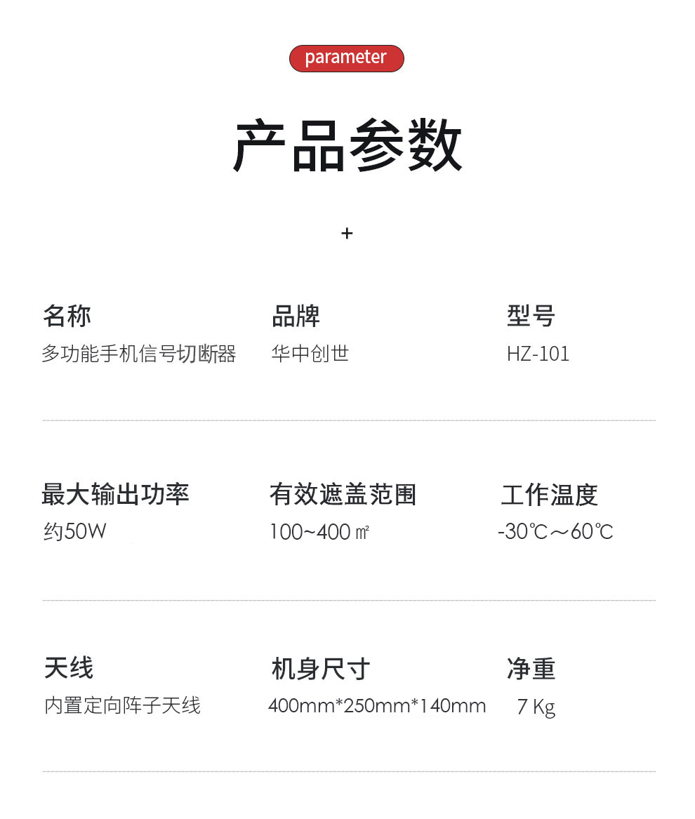 华中创世 HZ-101 50W定向增强 移动通讯屏蔽器定向增强50W 2G/3G/4G/5G/2.4WIIF 自营