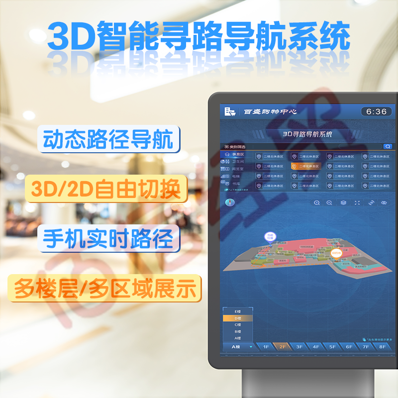 视尔商场导视系统 3D标识导向路线图导购自助寻路楼层导航终端一体机商场地图地下室停车场收费软件定制 AI智慧屏语音交互一体机 自营