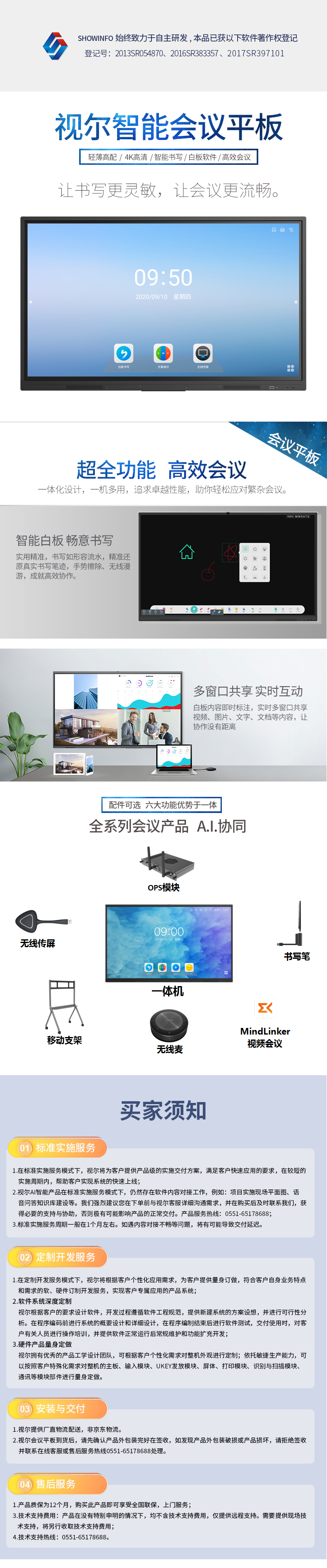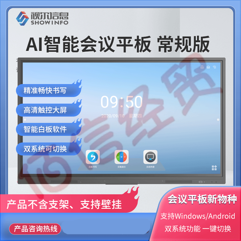 ¥9409.00视尔(showinfo)新款智能会议平板系统 电子白板软件 商用会议白板 软硬一体 常规版 黑色 55英寸屏幕