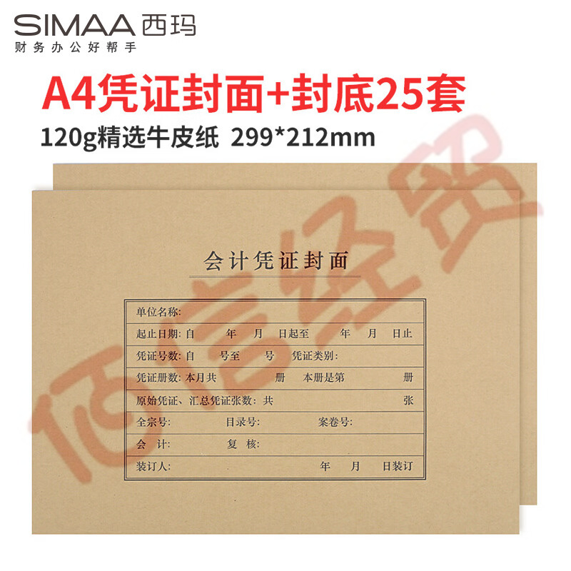 西玛(SIMAA)A4凭证封面套包木浆120g --FM152-- 25套/包,20包/箱(单包价-整箱售-拍20组) 自营