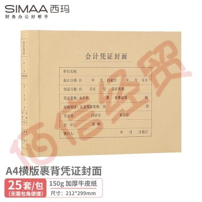 西玛A4裹背式凭证封面横版 6554 加厚150克 上下联裁开-上联裹背 最大装订厚度4.5cm 封面:408*212mm 封底:297*212mm 25套/包 20包/箱(单箱价-整箱售-拍20组) 自营