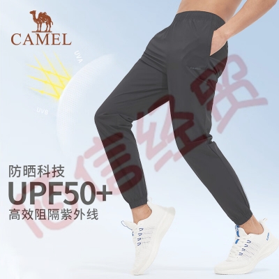 骆驼(CAMEL)冰丝防晒运动裤男2023春夏卫裤薄款零感防晒UPF50+冰感速干长裤 6670-2,幻影黑,男(束脚)(尺寸咨询客服) 自营