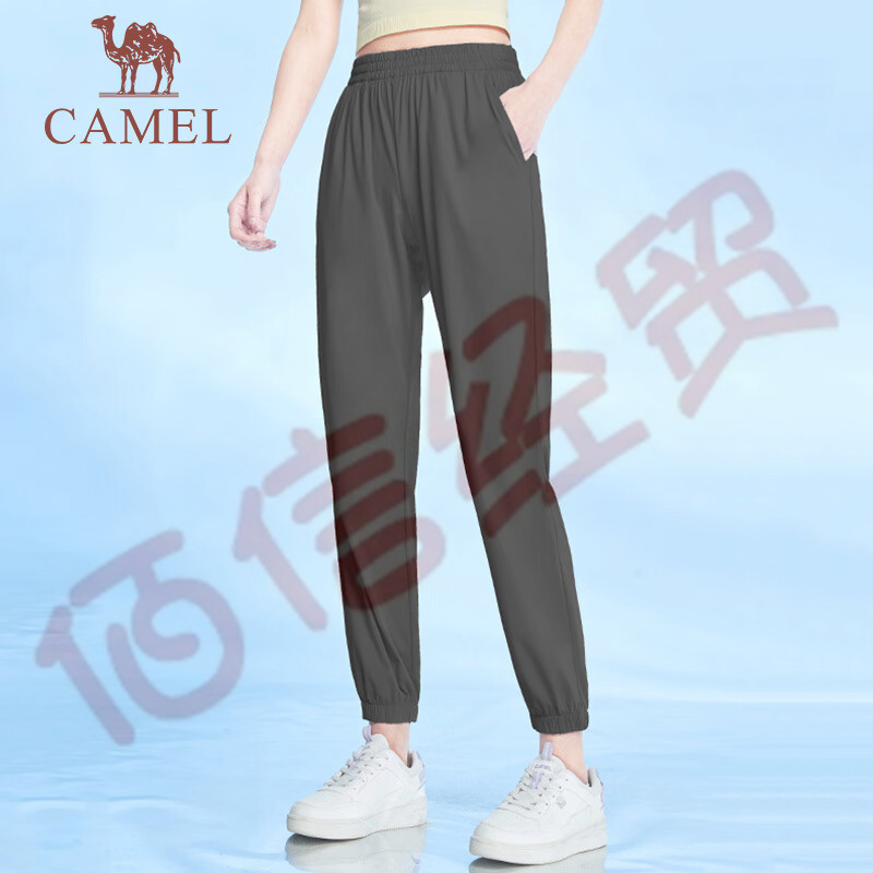 骆驼(CAMEL)冰丝防晒运动裤男2023春夏卫裤薄款零感防晒UPF50+冰感速干长裤 2007,幻影黑,女(束脚)(尺寸咨询客服) 自营
