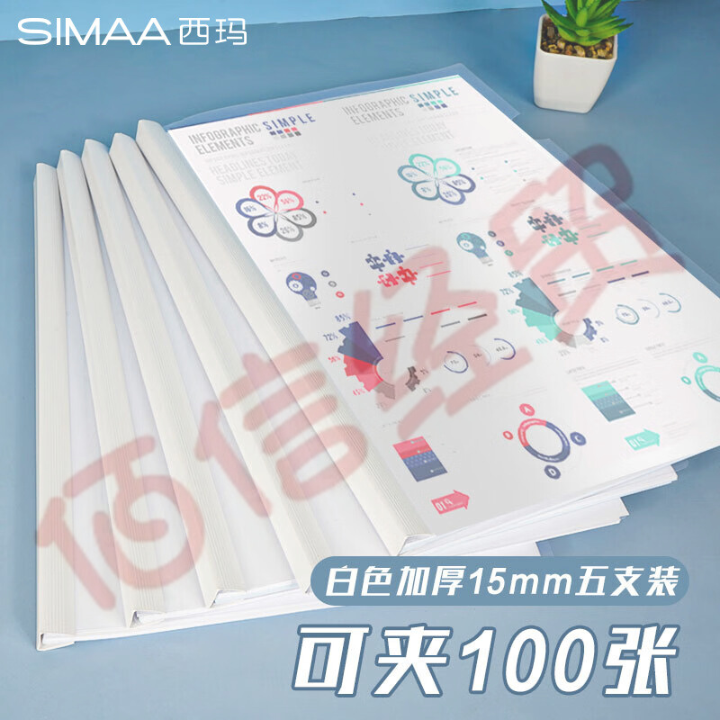 西玛(SIMAA)5只A4/15mm加厚抽杆夹 办公报告夹拉杆夹文件夹资料夹白色 文具 6079 自营
