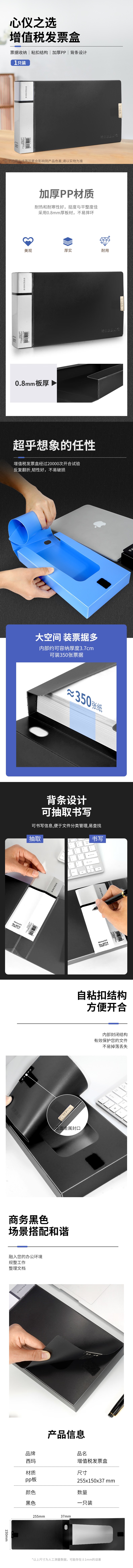 西玛(SIMAA)37mm文件盒增值税发票盒票据夹 加厚桌面财务党建试卷收纳 票据收纳 6075黑色(10个起售) 自营