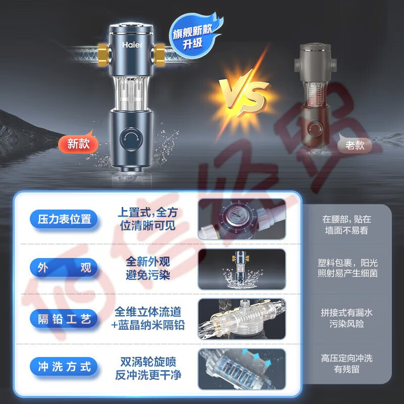 海尔(Haier)前置过滤器40微米免换芯反冲洗家用大通量净水器全屋自来水管道 HP35旗舰升级6T双涡轮正反冲洗 旗舰升级6T双涡轮正反冲洗 自营