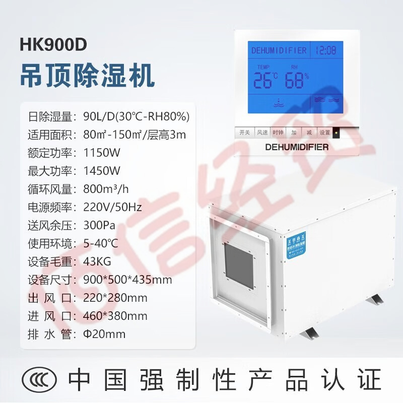 美资森美(MEIZISENMEI) 吊顶除湿机壁挂式工业中央抽湿机地下室管道除湿器吸顶式 HK900D 日除湿量90L/D 自营