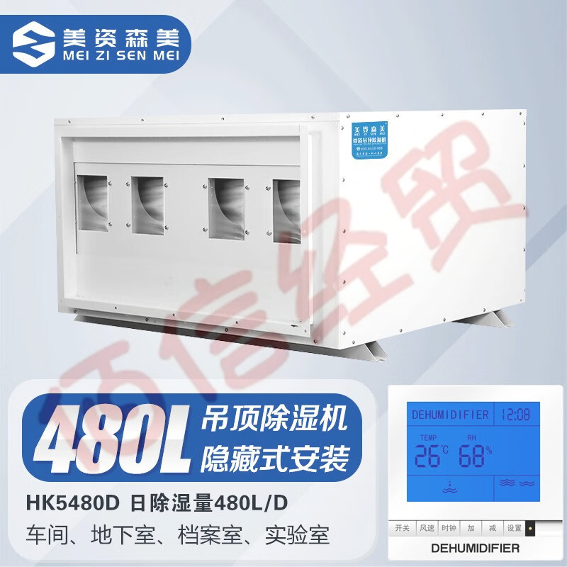 美资森美(MEIZISENMEI) 吊顶除湿机壁挂式工业中央抽湿机地下室管道除湿器吸顶式 HK5480D 日除湿量480L/D 自营