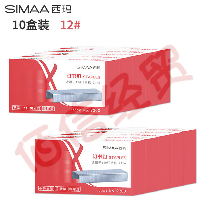 西玛(SIMAA)文具12#高强度订书针 易穿透订书针 1000枚/盒 10盒装 办公用品 9203 自营