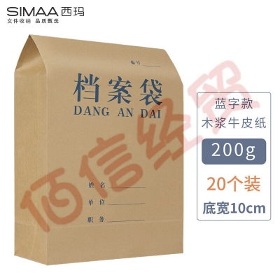 西玛6845木浆牛皮纸档案袋蓝字10cm-20 木桨200g 240*340*100mm 20个/包 25包/箱(红、蓝两色下单跟客服联系)(整箱售) 自营