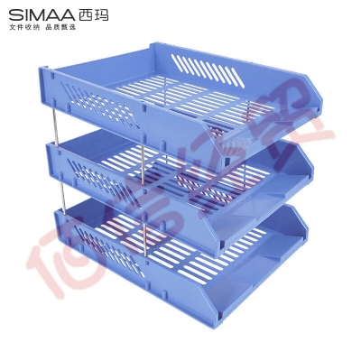 西玛(SIMAA)三层镂空收纳文件座 自由拆卸组装三层文件盘/文件框/文件架 牢固耐用 办公用品 蓝色6146(5个起售) 自营