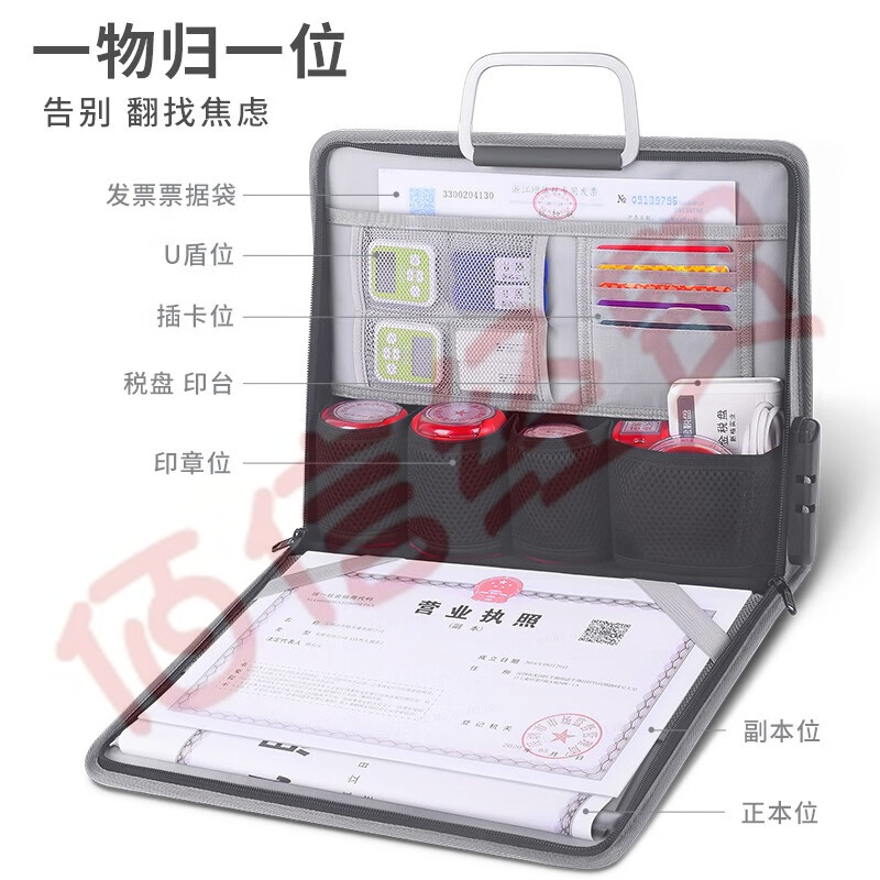 西玛(SIMAA) 便携手提印章执照一体包 印章收纳 工商营业执照证件收纳包带密码锁 灰4个章位 21456 自营