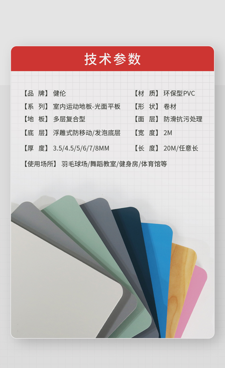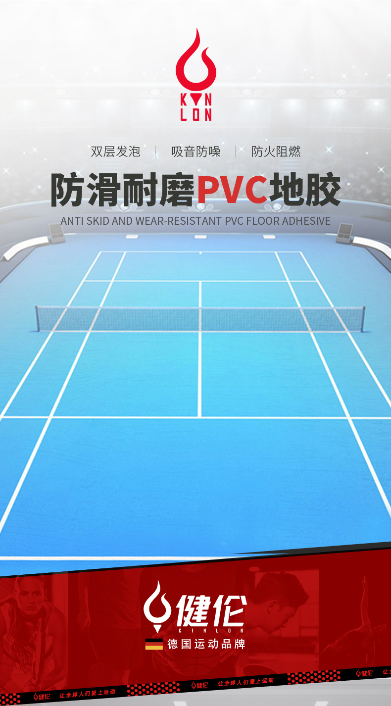 健伦(JEEANLEAN) 羽毛球场地胶标准双人室内可移动PVC塑胶防滑专用划线运动地板 PVC斑点纹4.5mm 羽毛球场专用108m不包安装 自营