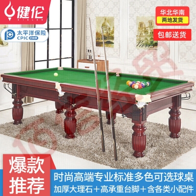 健伦(JEEANLEAN) 台球桌 标准成人家用桌球台美式黑八落袋台球案二合一乒乓球 标准款(金/银/棕)促销 自营