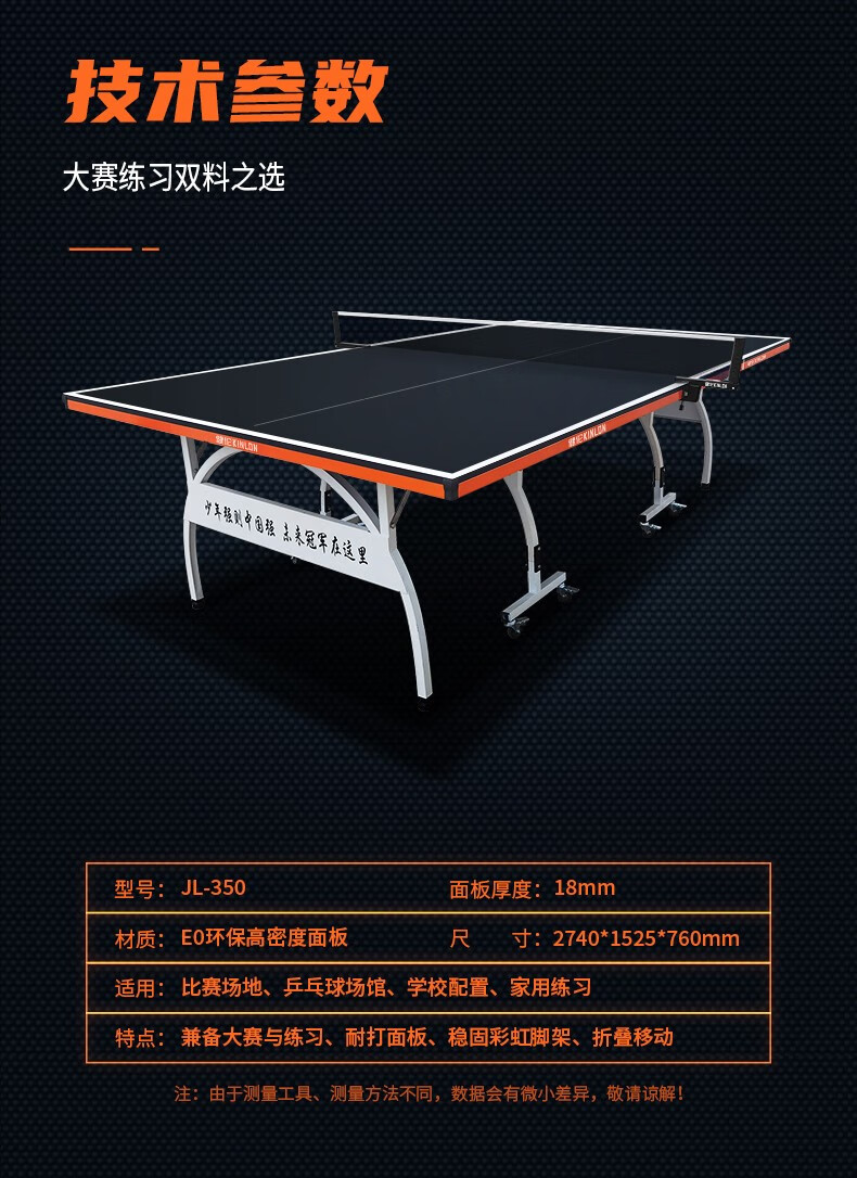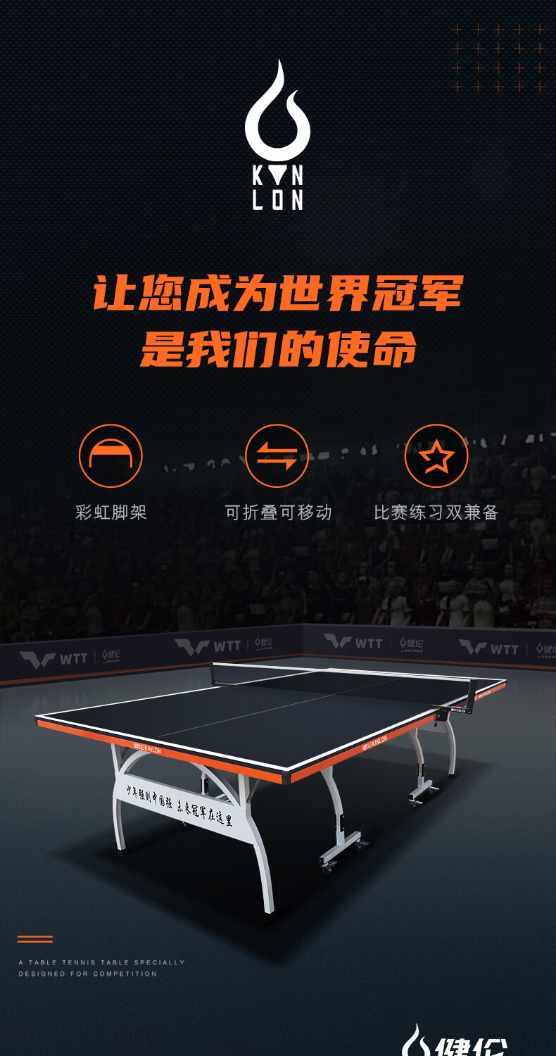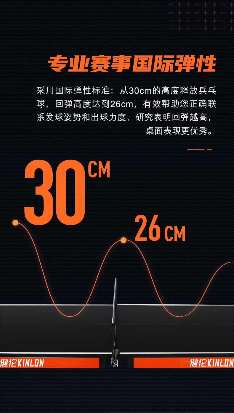 健伦(JEEANLEAN) 乒乓球桌 家用室内标准可折叠移动专业比赛乒乓球台 KL338一体轮折叠(18MM厚) 自营