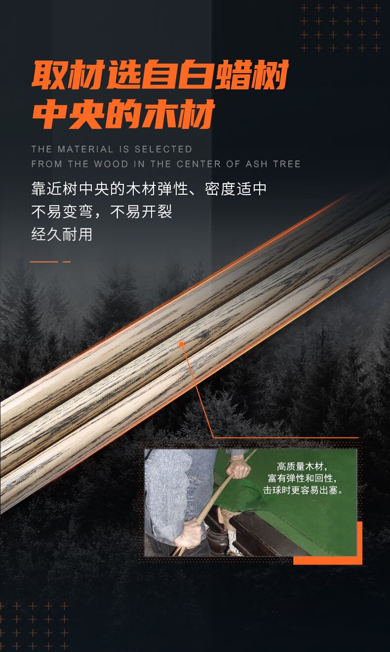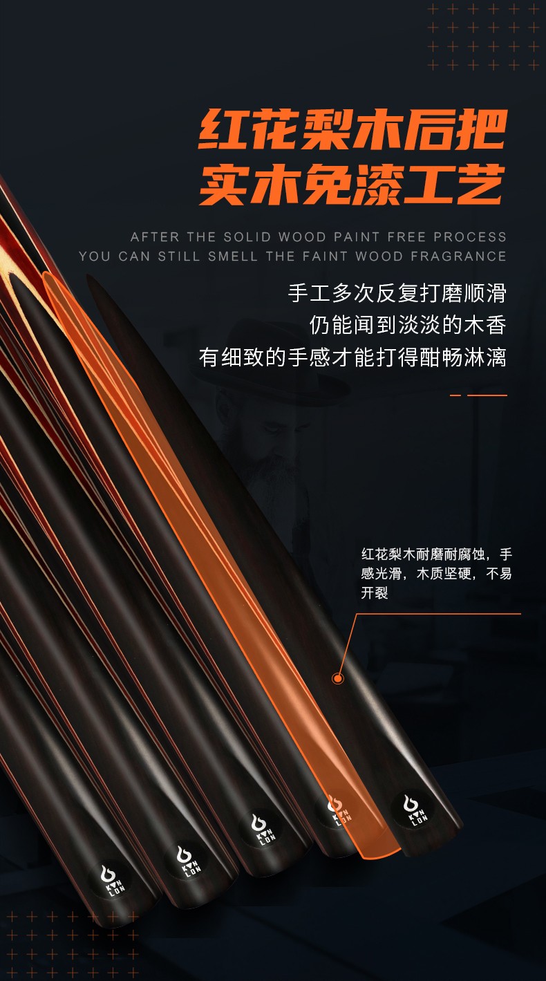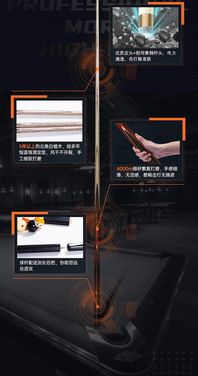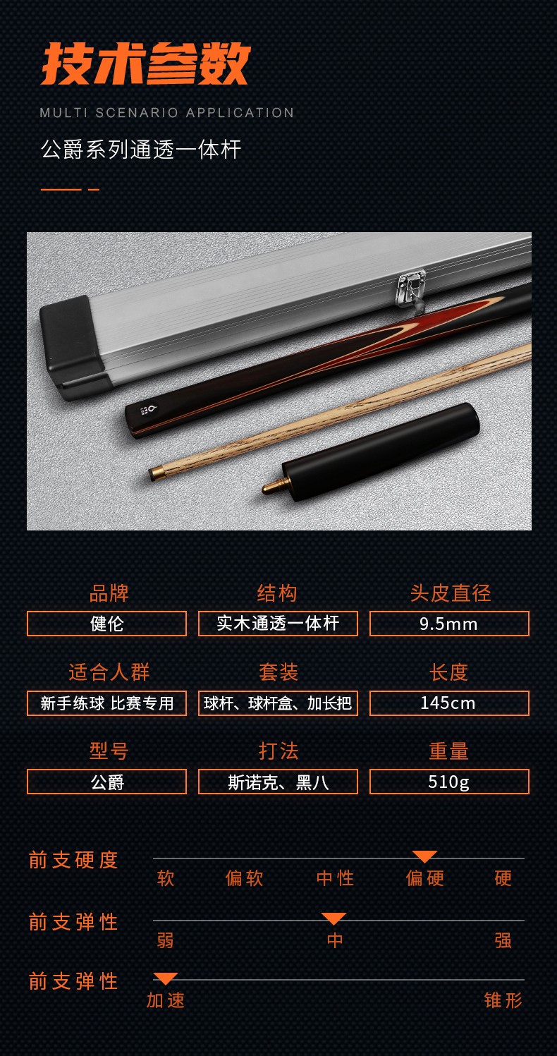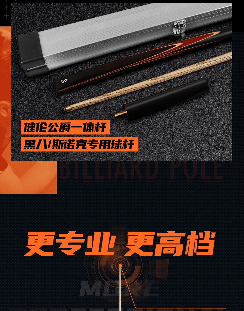 健伦(JEEANLEAN) 台球杆小头斯诺克球杆黑8 英式美式黑八实木桌球杆通杆9.5mm JL-429G英式斑马手工杆(将军) 自营