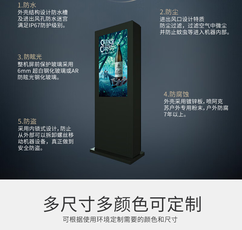 聚徽 户外立式广告机室外落地高亮防水防雷防盗多媒体触摸一体机液晶广告显示屏安卓播放器 75英寸电容触摸版 自营