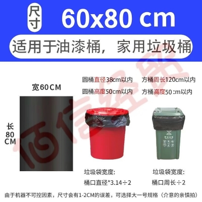 乙晨合垃圾袋手提式背心式平口式扣手式超强韧性全新材质 平口式60*80cm特厚款50只(5个起售) 自营