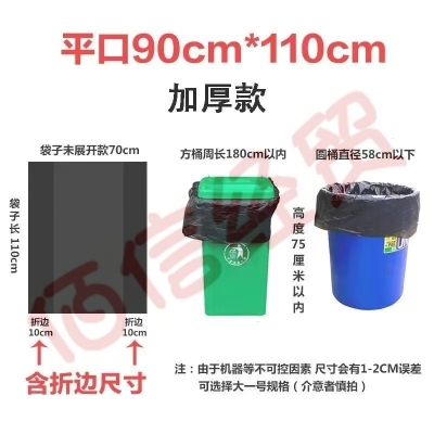 乙晨合垃圾袋手提式背心式平口式扣手式超强韧性全新材质 平口式90*110cm加厚50只(3个起售) 自营