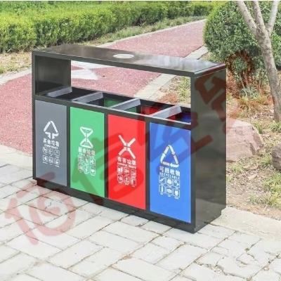 乙晨合分类垃圾桶带轮垃圾桶脚踏垃圾桶金属环卫垃圾桶 镀锌四分类垃圾箱 自营