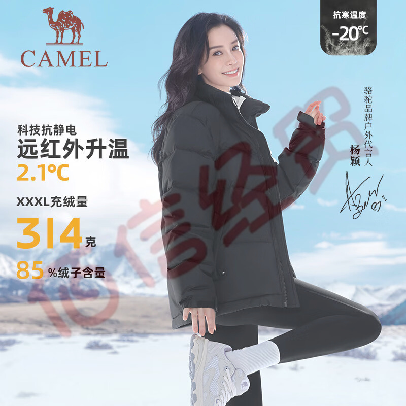骆驼【baby同款】羽绒服男女同款2023秋冬[小火炉]锁温保暖羽绒服外套 幻影黑,男女同款(抗寒-20°C) L 自营