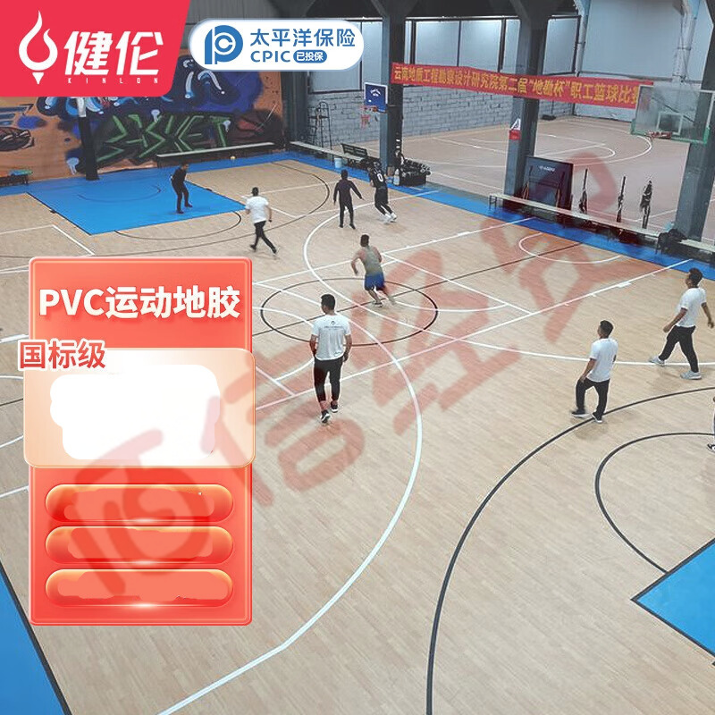健伦(JEEANLEAN)室内篮球场地胶高端场馆专用防滑运动地板赛事训练通用PVC木纹8mm 自营