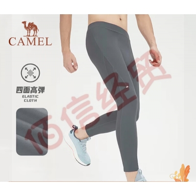 骆驼 健身服高腰紧身裤女专业高弹瑜伽训练高腰跑步运动裤男 JC12263675,深灰,男 S 自营