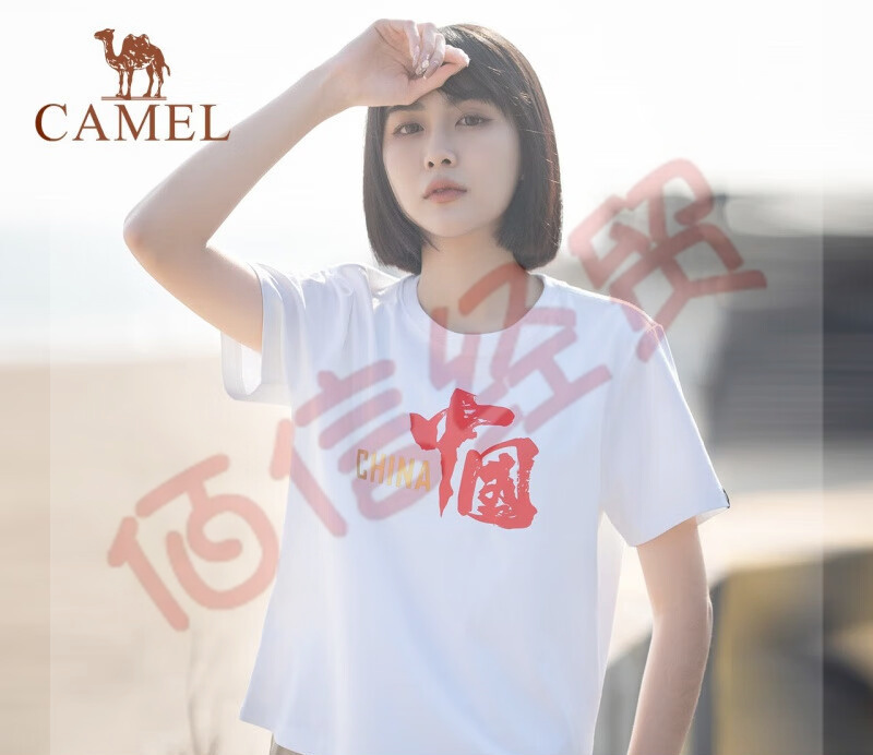 骆驼(CAMEL)户外速干衣女款春夏季国潮印花时尚宽松透气休闲上衣 7012212001,极地白,女 S 自营