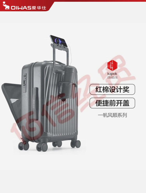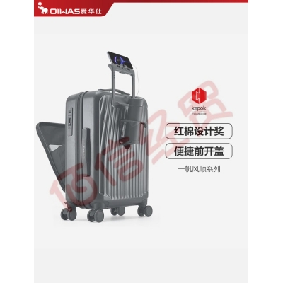 爱华仕前开盖商务行李箱男拉杆箱可充电20英寸登机箱旅行箱女密码箱6641 黑色、银色 20英寸(登机箱) 自营