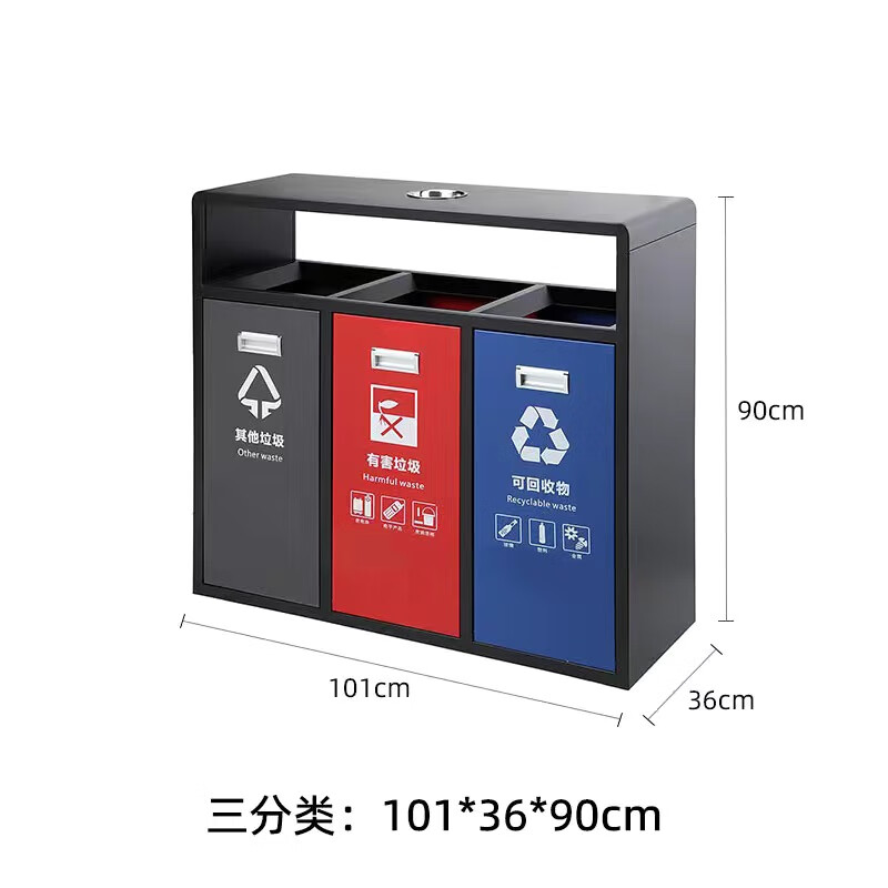 乙晨合分类垃圾桶带轮垃圾桶脚踏垃圾桶金属环卫垃圾桶 镀锌三分类垃圾箱 自营