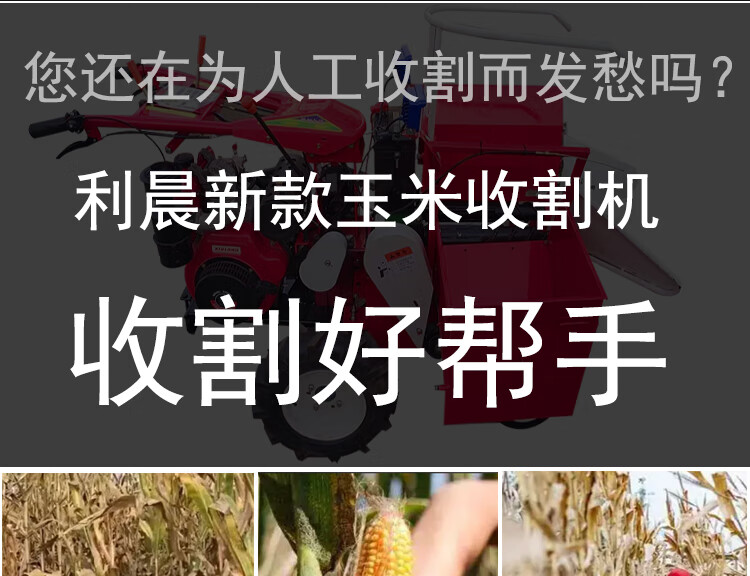 利晨 单行玉米收割机小型收玉米机器神器玉米联合收获机摘苞米机玉米秆粉碎秸秆还田一体机 195柴油皮带款 自营
