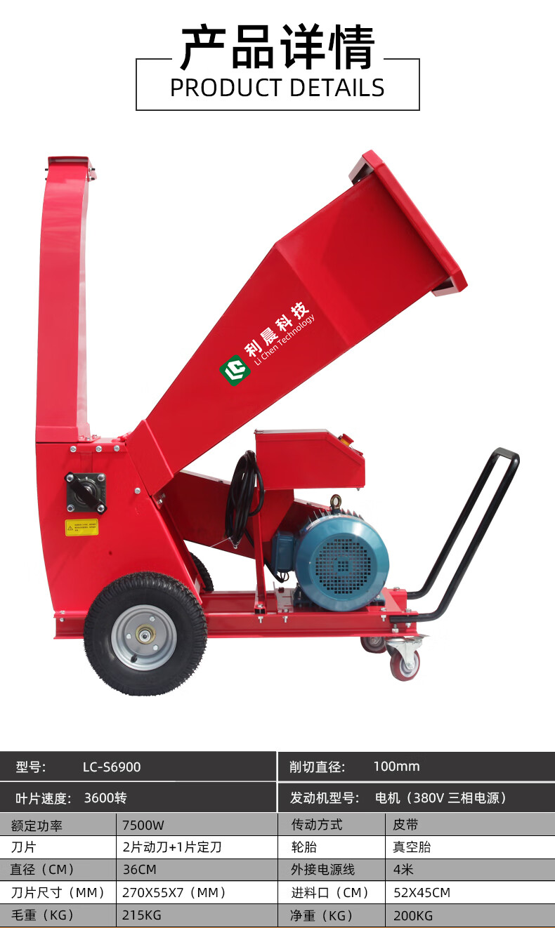 利晨 木材树枝粉碎机大型多功能园林碎木果园绿化移动式汽油葡萄枝秸秆汽油树木秸秆粉碎机碎木机碎枝机S6900 自营