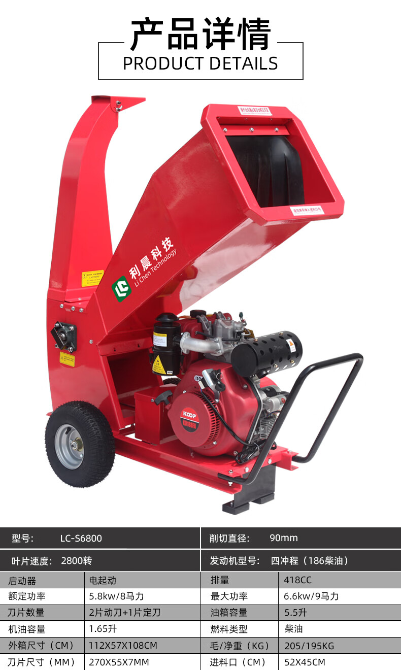 利晨 木材树枝粉碎机大型多功能园林碎木果园绿化移动式汽油葡萄枝秸秆汽油树木秸秆粉碎机碎木机碎枝机S6800 自营