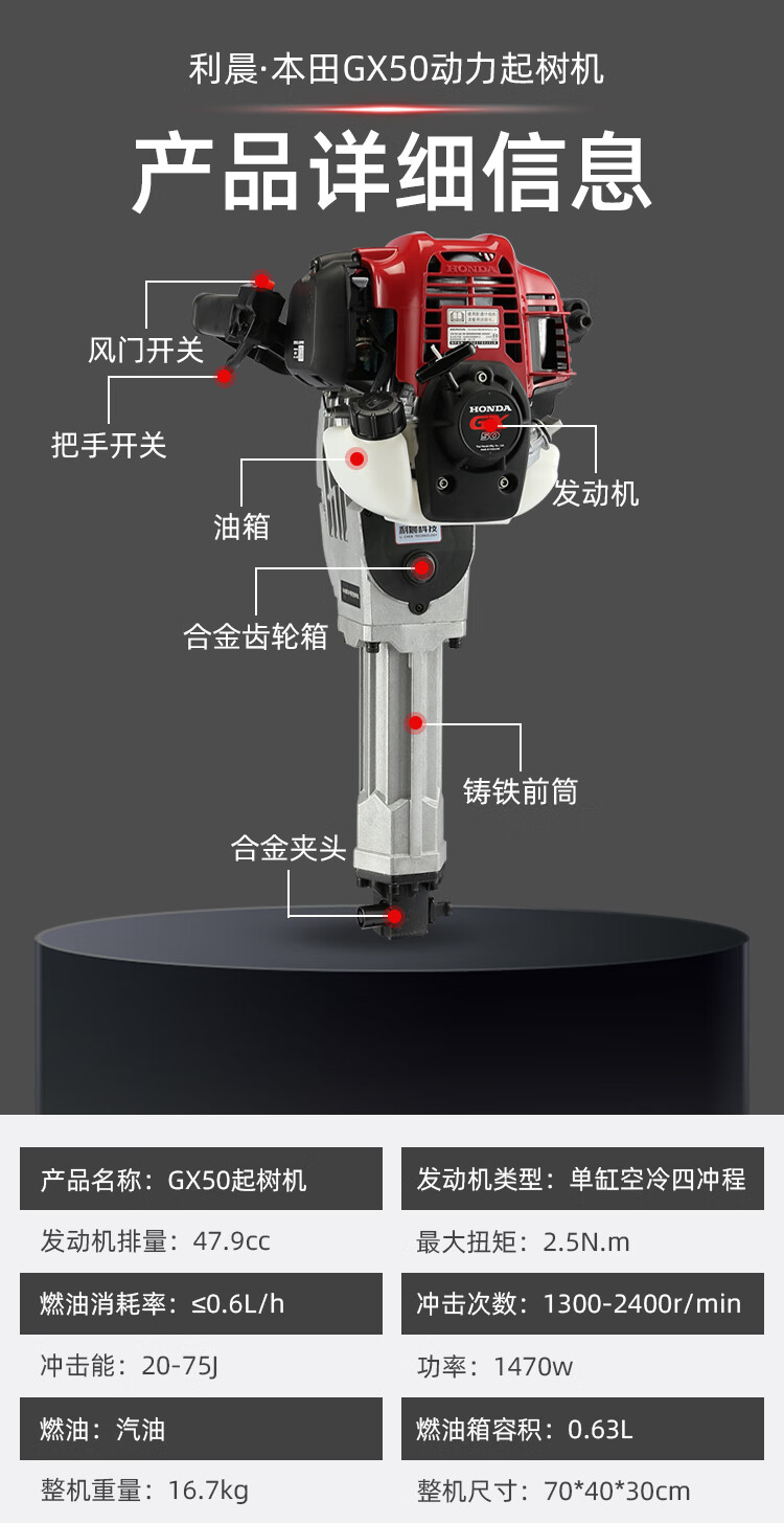 利晨汽油镐挖树机神器起树机起苗机移树机挖坑挖沟挖土本田GX50植树机 自营