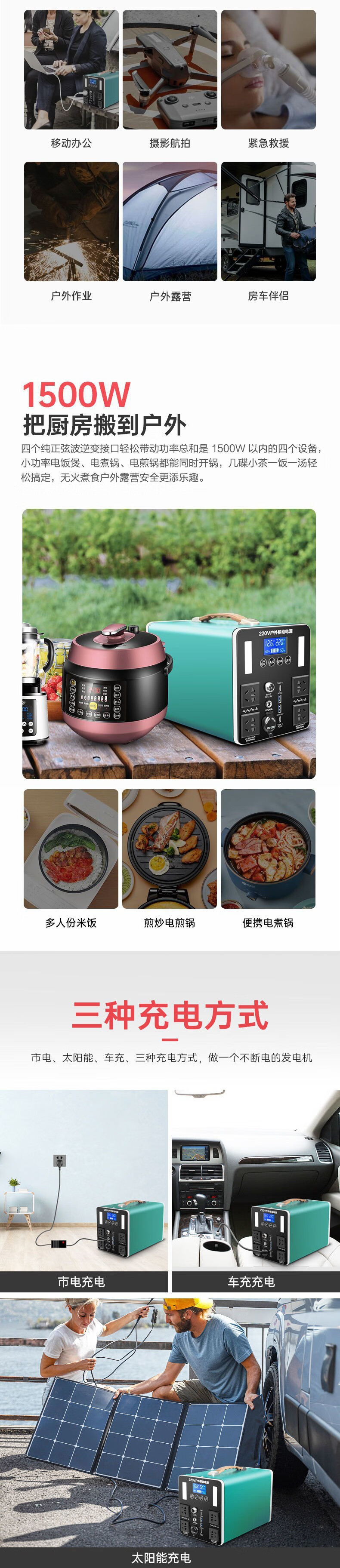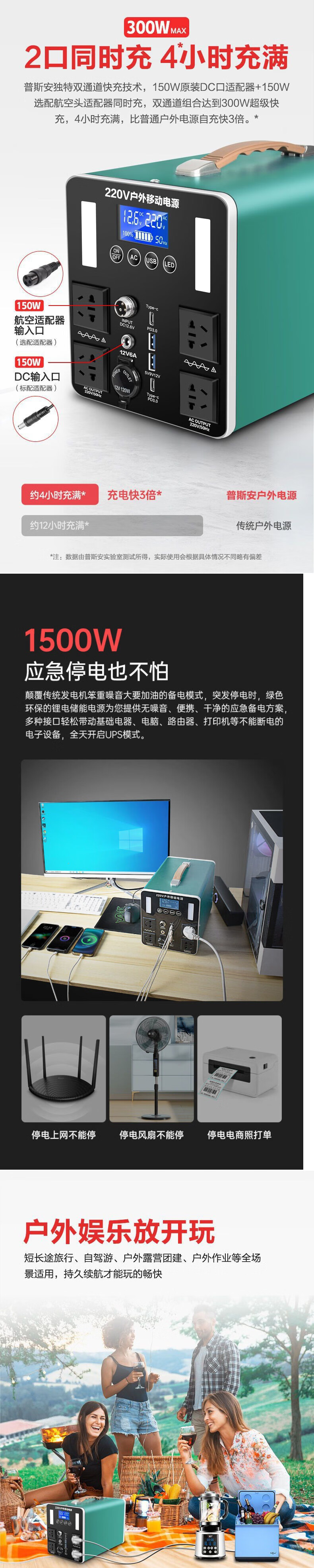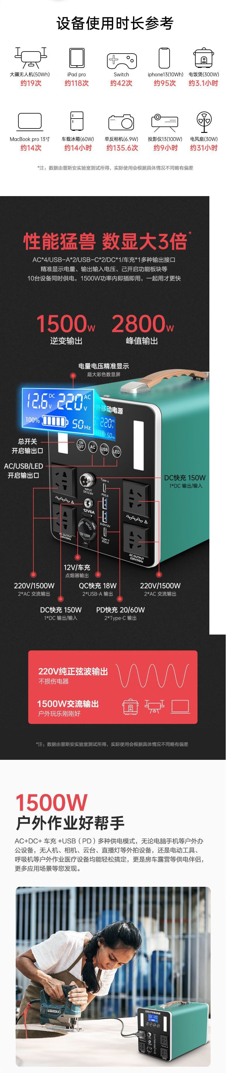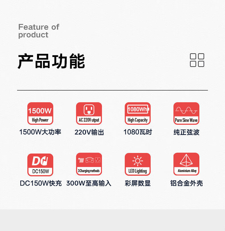 利晨户外移动电源220V摆摊大容量自驾游露营1800W大功率车载储能电瓶 自营