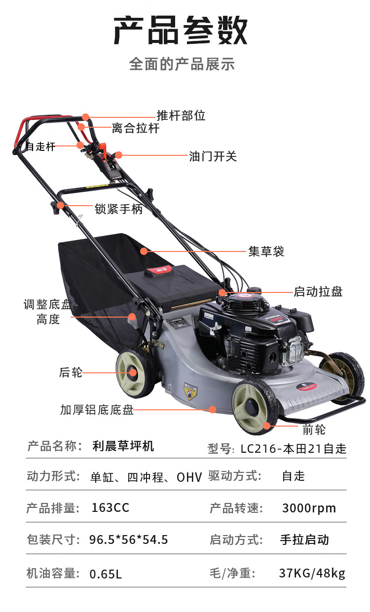 利晨 本田割草机汽油机除草机草坪机修剪机打草机剪草机推草机修草机锄草机家用大功率四冲程多功能21寸铝底 自营