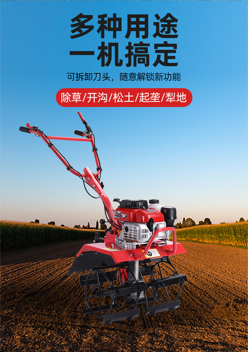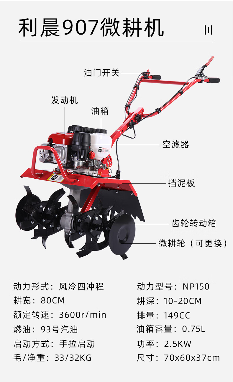 利晨宗申NP150汽油微耕机农用犁地翻土松土开沟机耕田翻地耕地旋耕机(主机+旋耕刀+轮胎+开沟器+轮胎) 自营