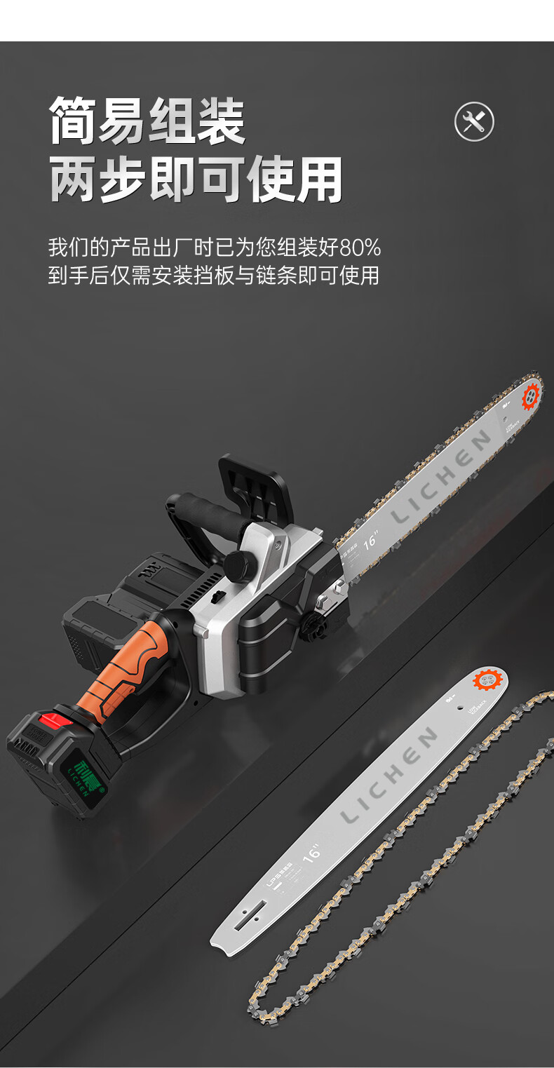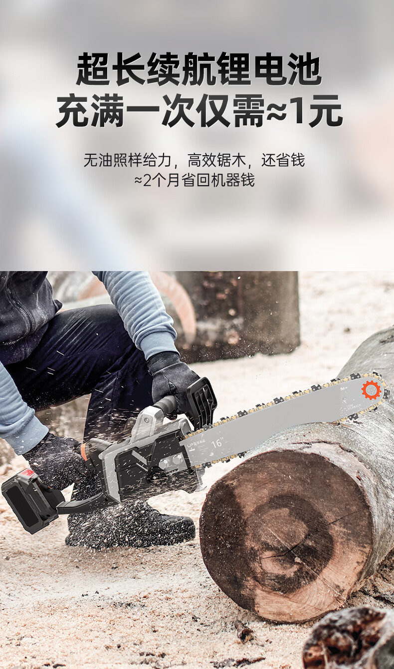 利晨 充电式锂电锯汽油锯电动伐木锯手持无线迷你小型家用电链锯手提大功率链条单手马刀锯树枝修枝锯砍树 自营