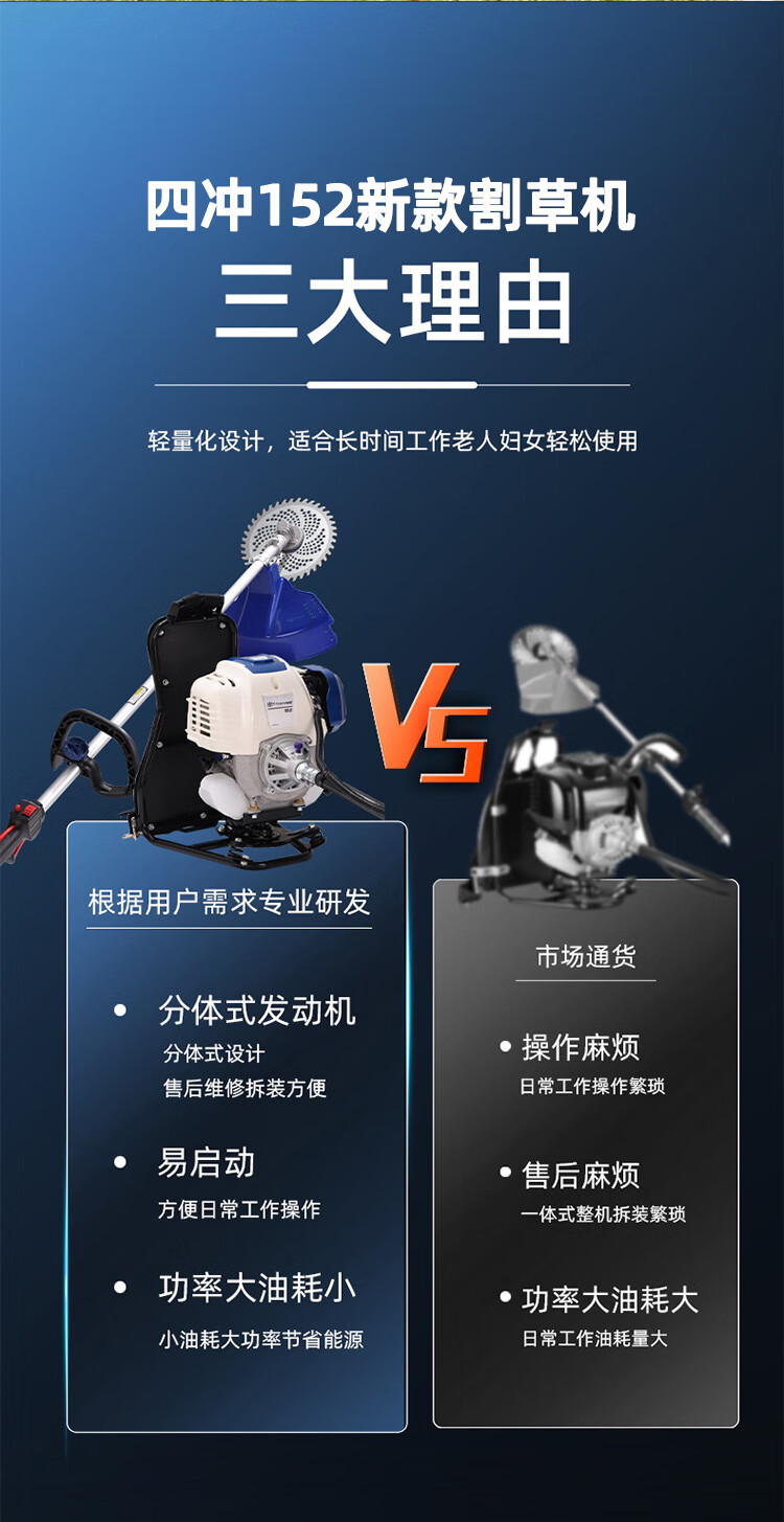 利晨四冲程152背负式汽油割草机打草机大功率汽油农用开荒除草收割机(152-B背负式割草机) 自营