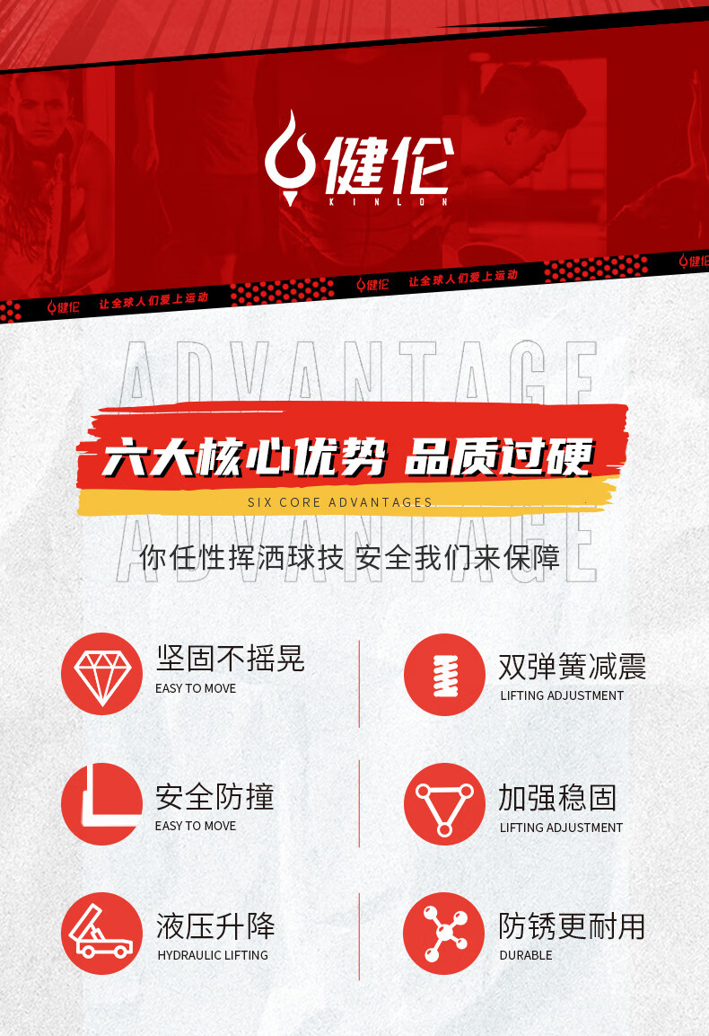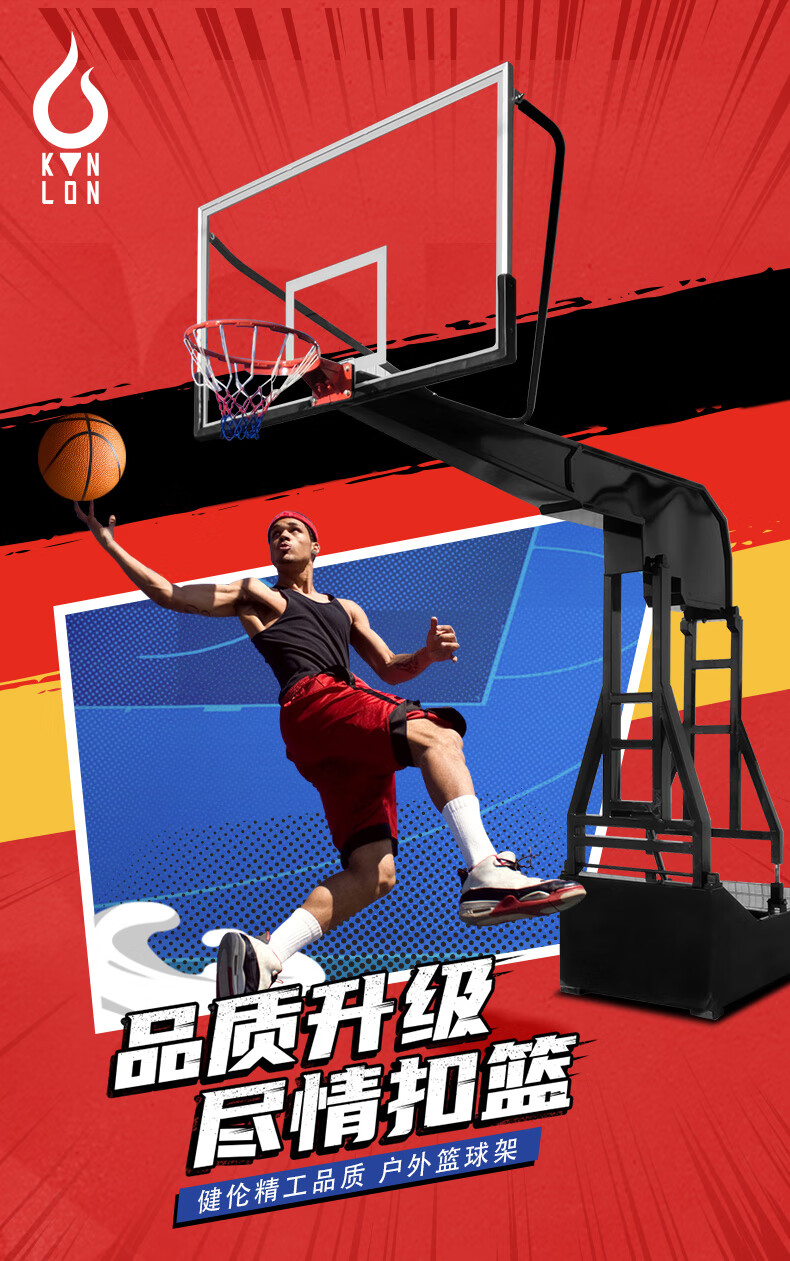 健伦篮球架成人户外移动篮球架手动液压篮球架JL202SAY 自营