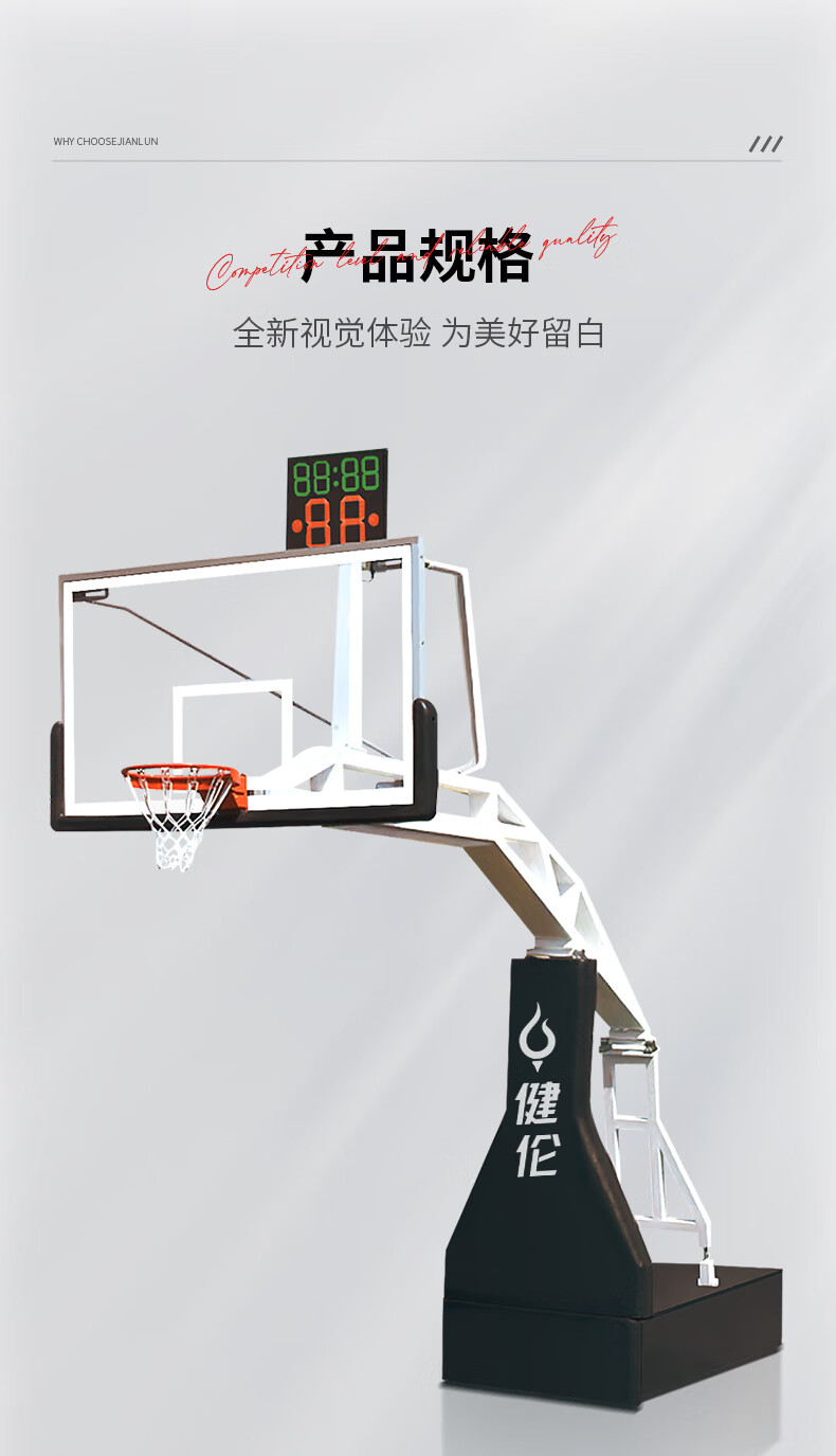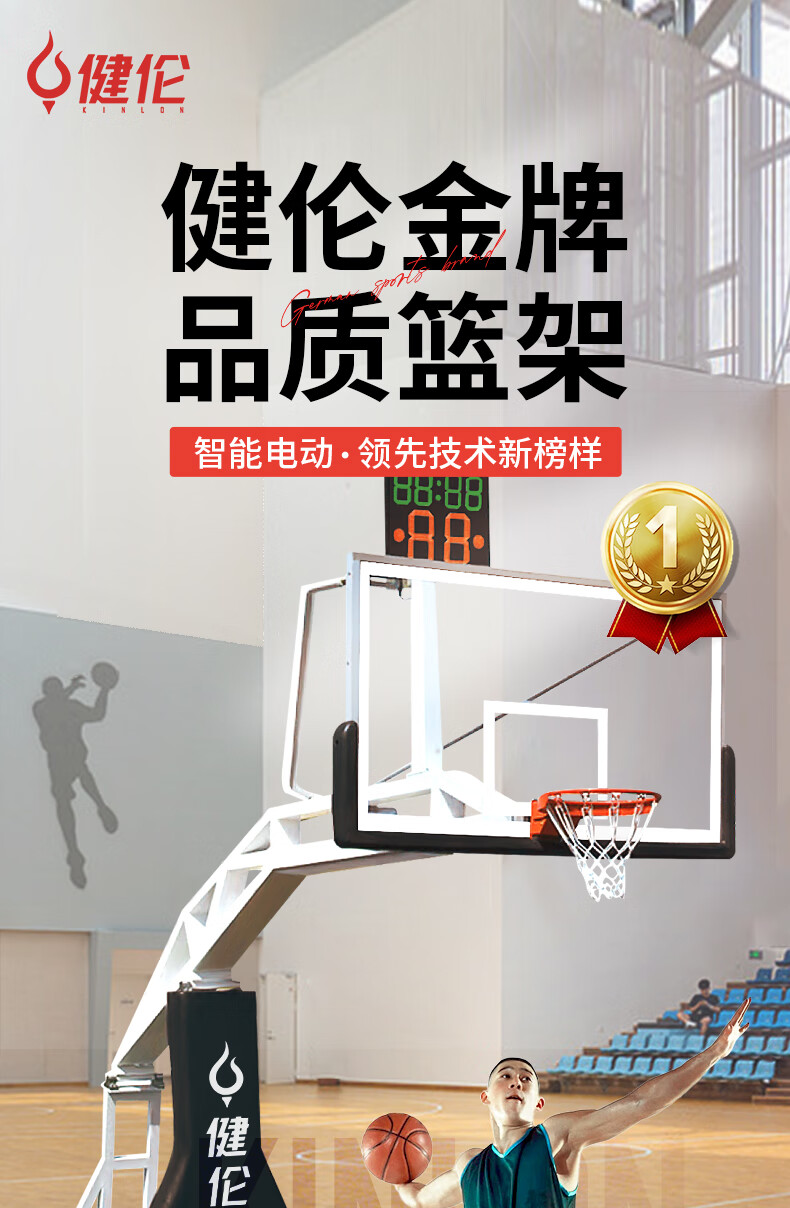 健伦(JEEANLEAN)JLAA169篮球架标准成人室内外移动豪华比赛版电动液压篮球架 自营