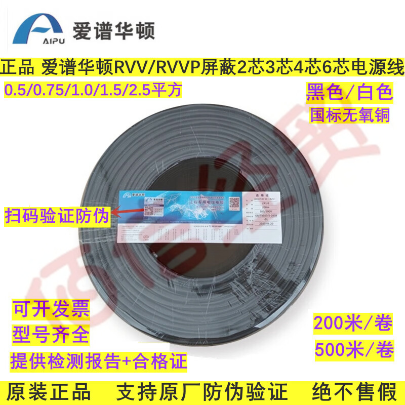 爱谱华顿RVV/RVVP国标电源线2芯3芯4芯6芯0.5/0.75/1.0/1.5/2.5 RVS2*1.5 自营