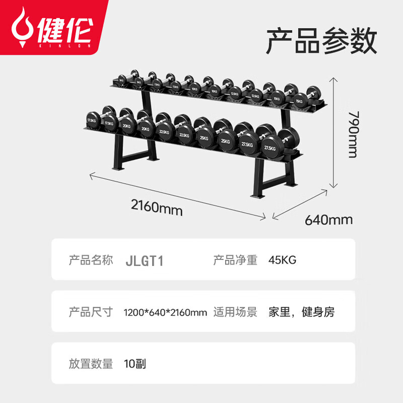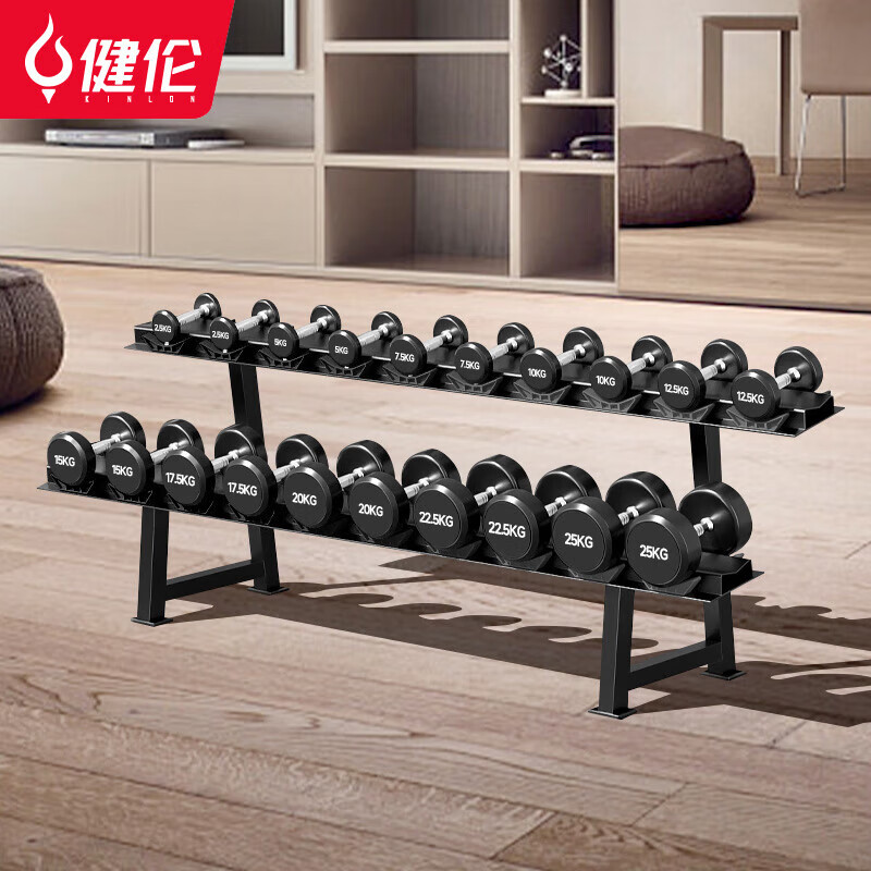 健伦(JEEANLEAN)哑铃男士健身器材哑铃套装环保包胶双层十幅哑铃架275KG组合JLGT1 自营