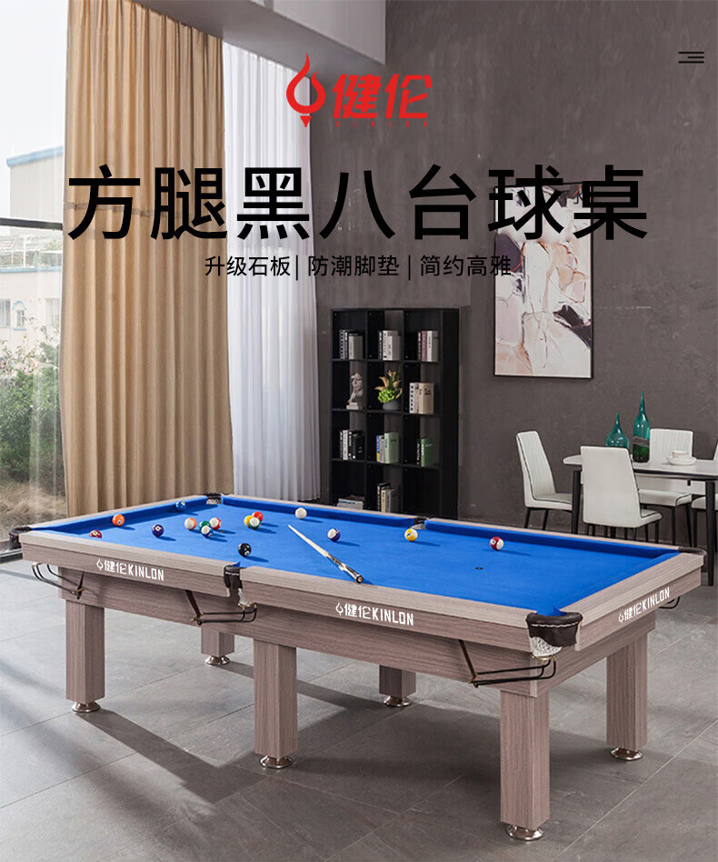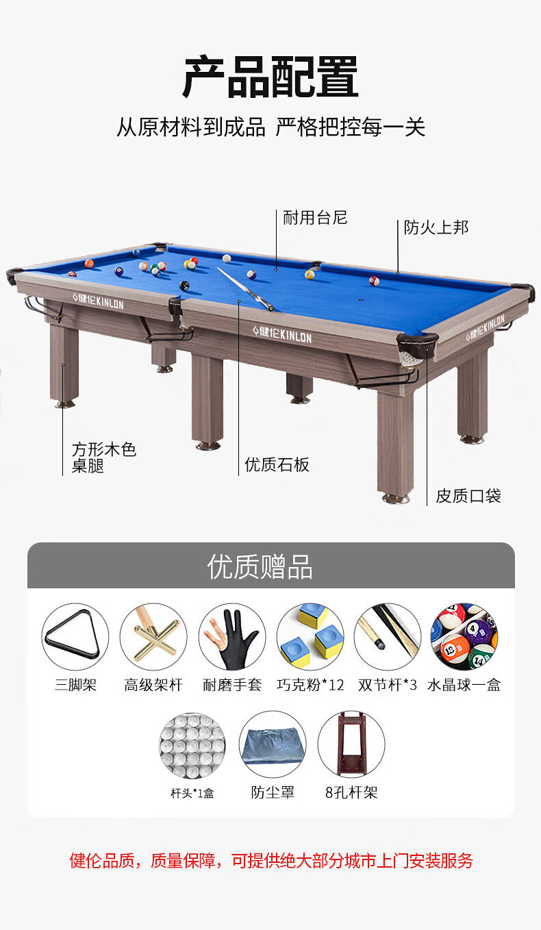 健伦台球桌标准成人8球家用桌球桌黑八九尺台球桌 顶配版JLAB158 自营