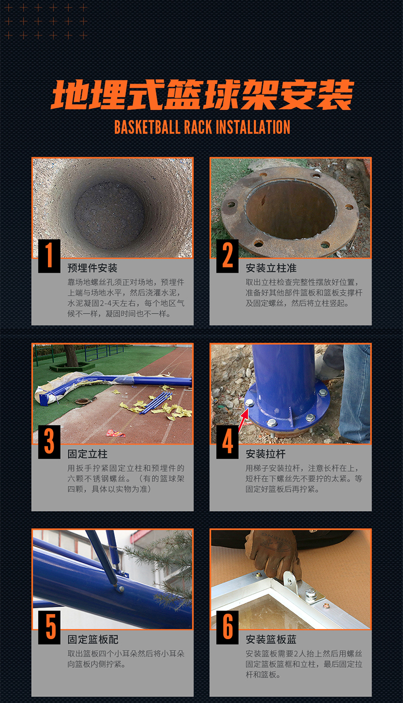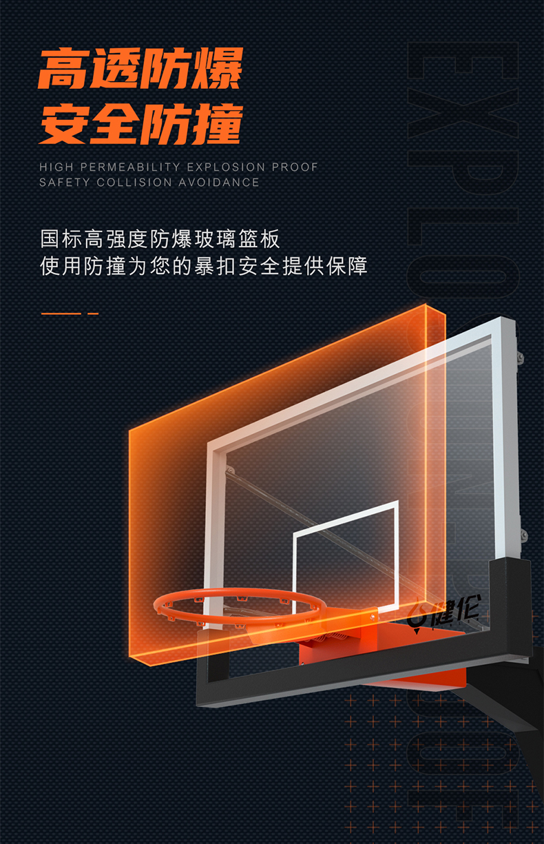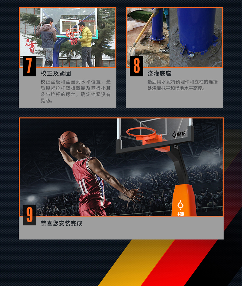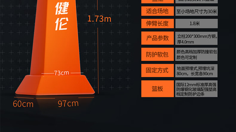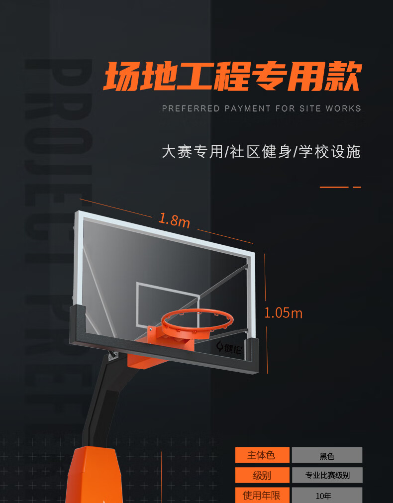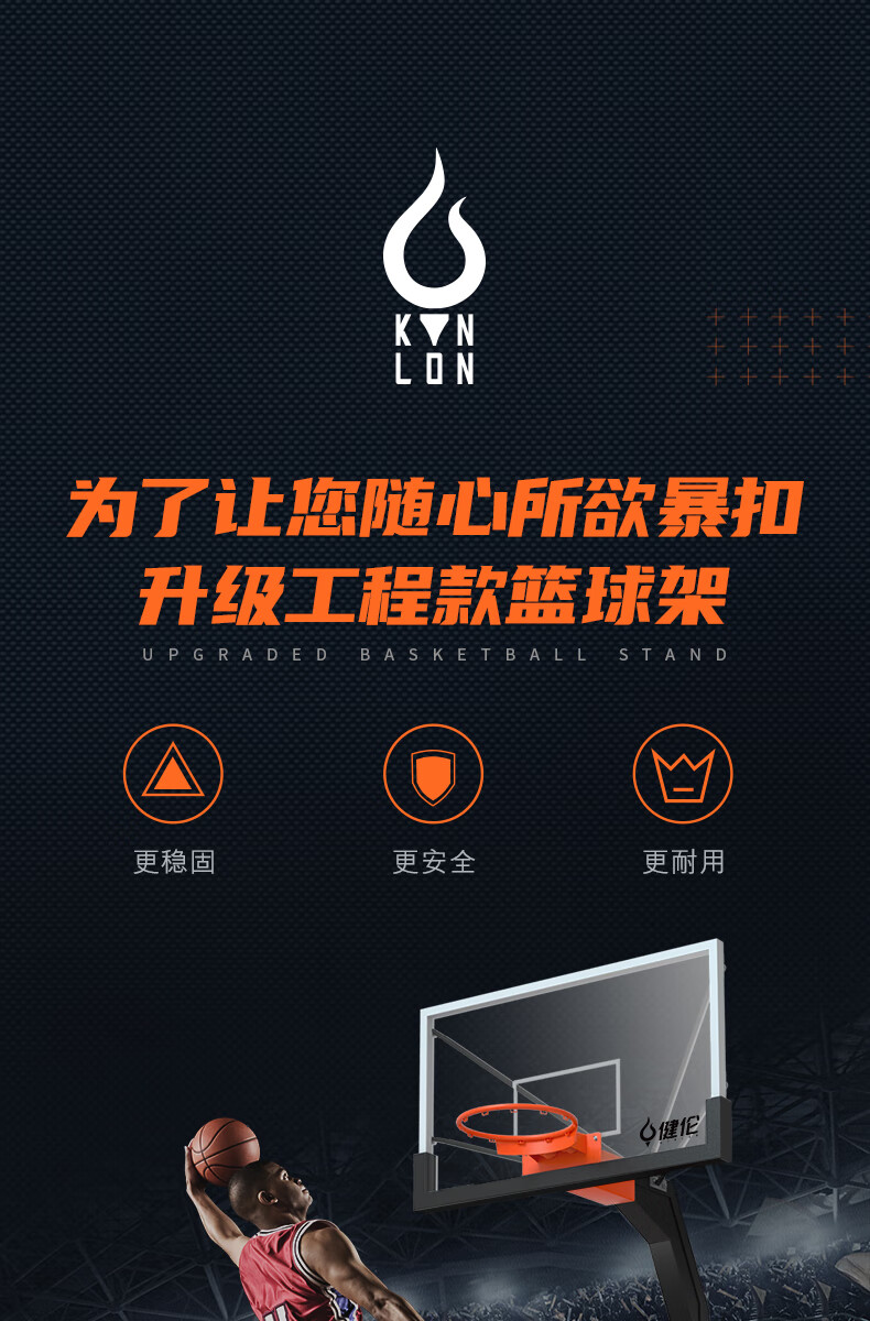健伦(JEEANLEAN)JL-2704篮球架 标准成人户外移动地埋式篮球架 黑橙款 自营